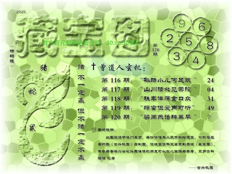 125期藏宝图:【更新中】 浅解:更新中 综合解肖:更新中 |